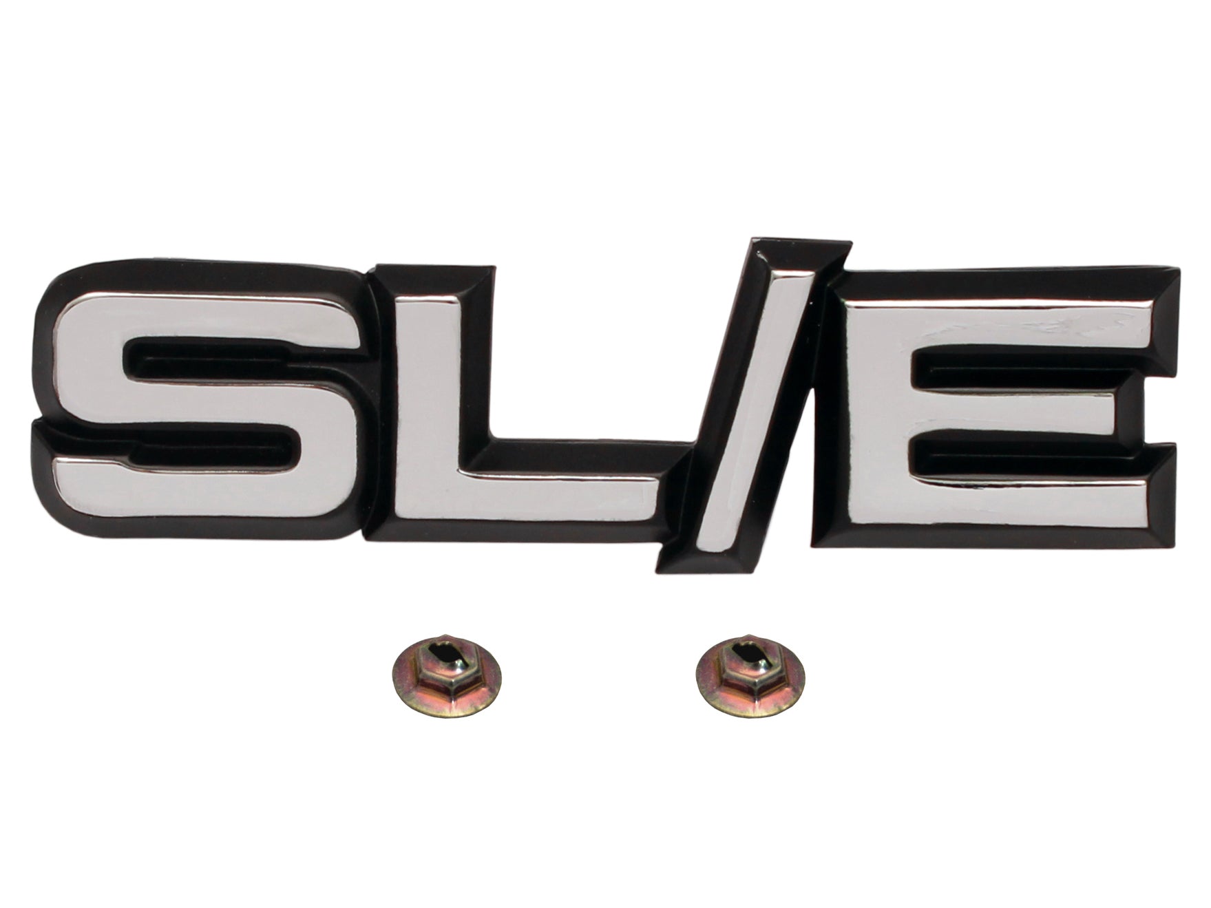 “SLE” Alloy die cast chrome finish with black inlay which goes on the grille of the vehicle, speed nuts are supplied with this badge.