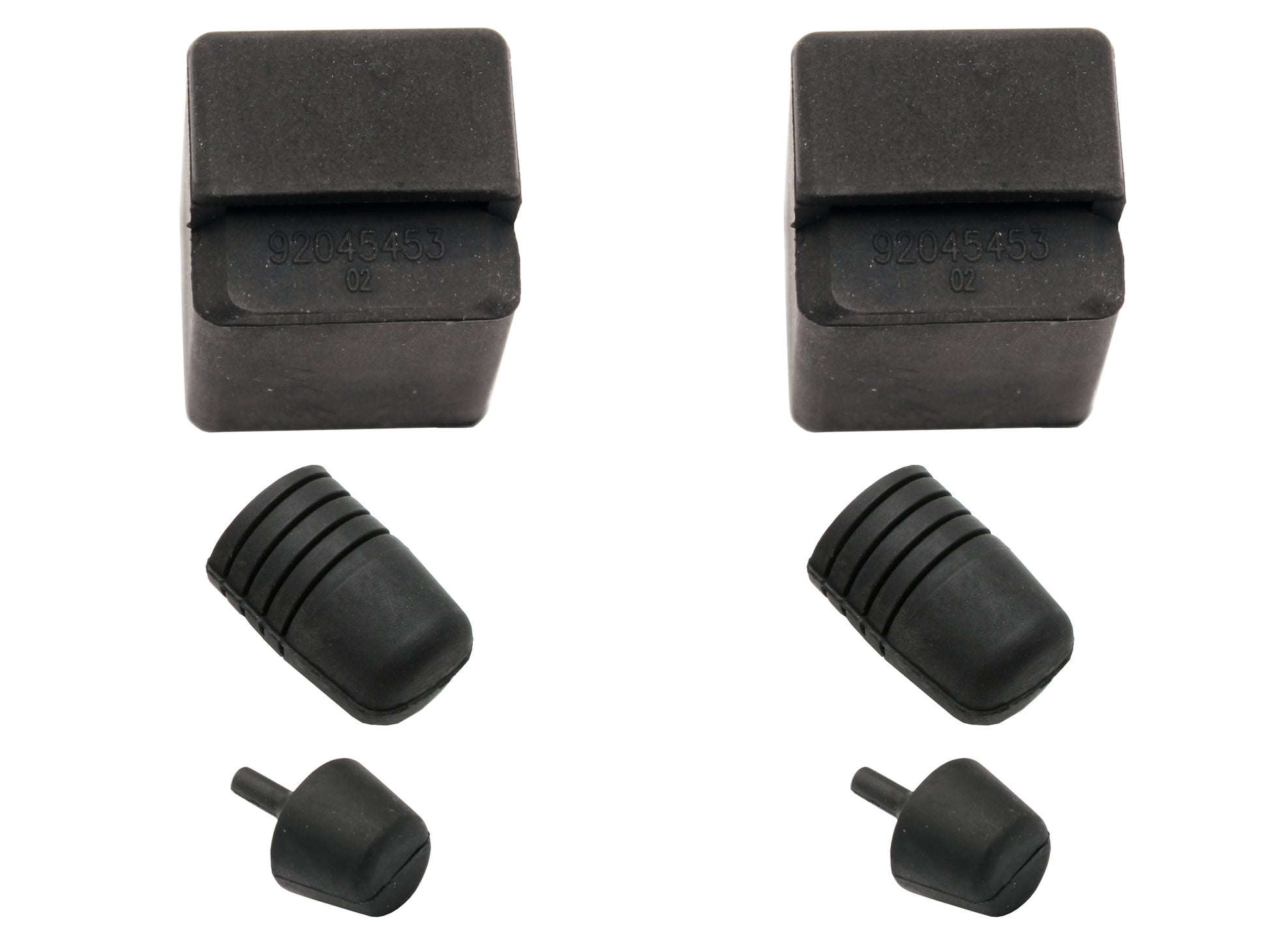 Boot lid (trunk) and hinge rubber bumper kit. The hinge bumper pushes onto the upper arm of the boot hinge to rest against the bottom of the rear panel when the boot lid is up.