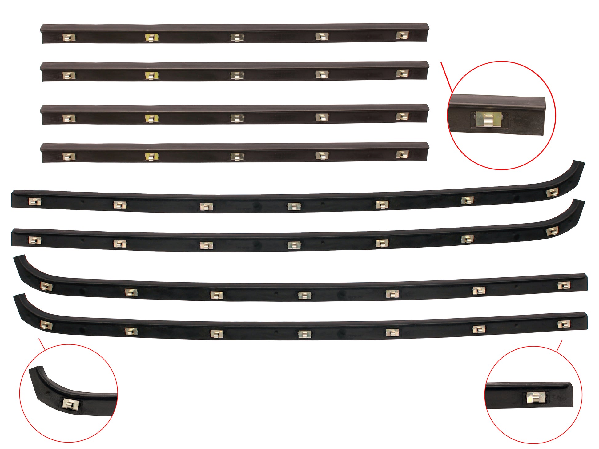 Includes inner and outer door belts for all 4 doors