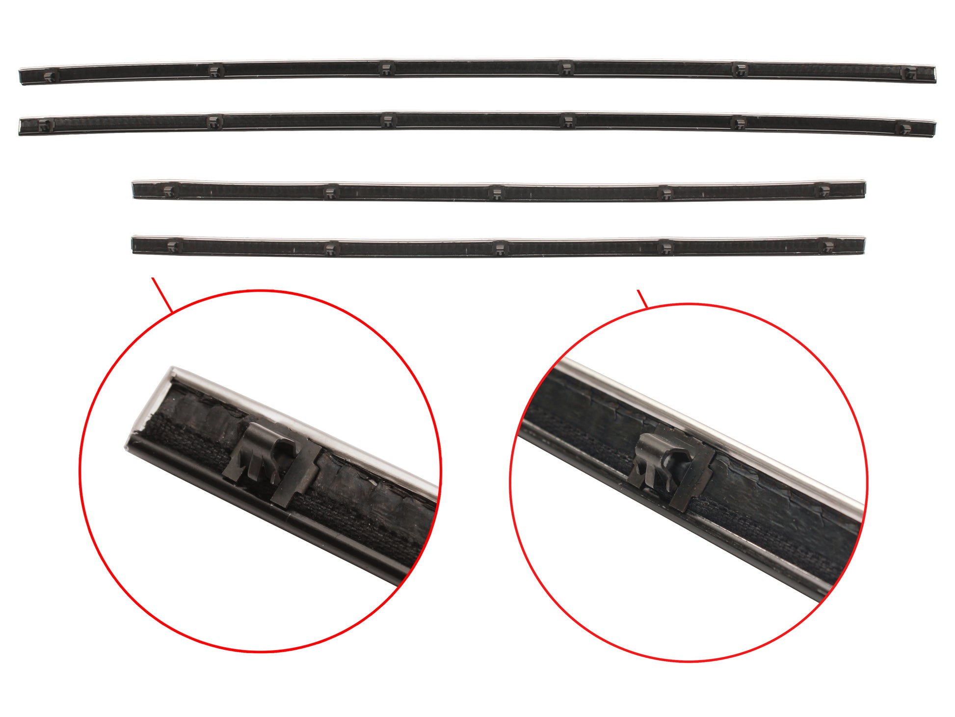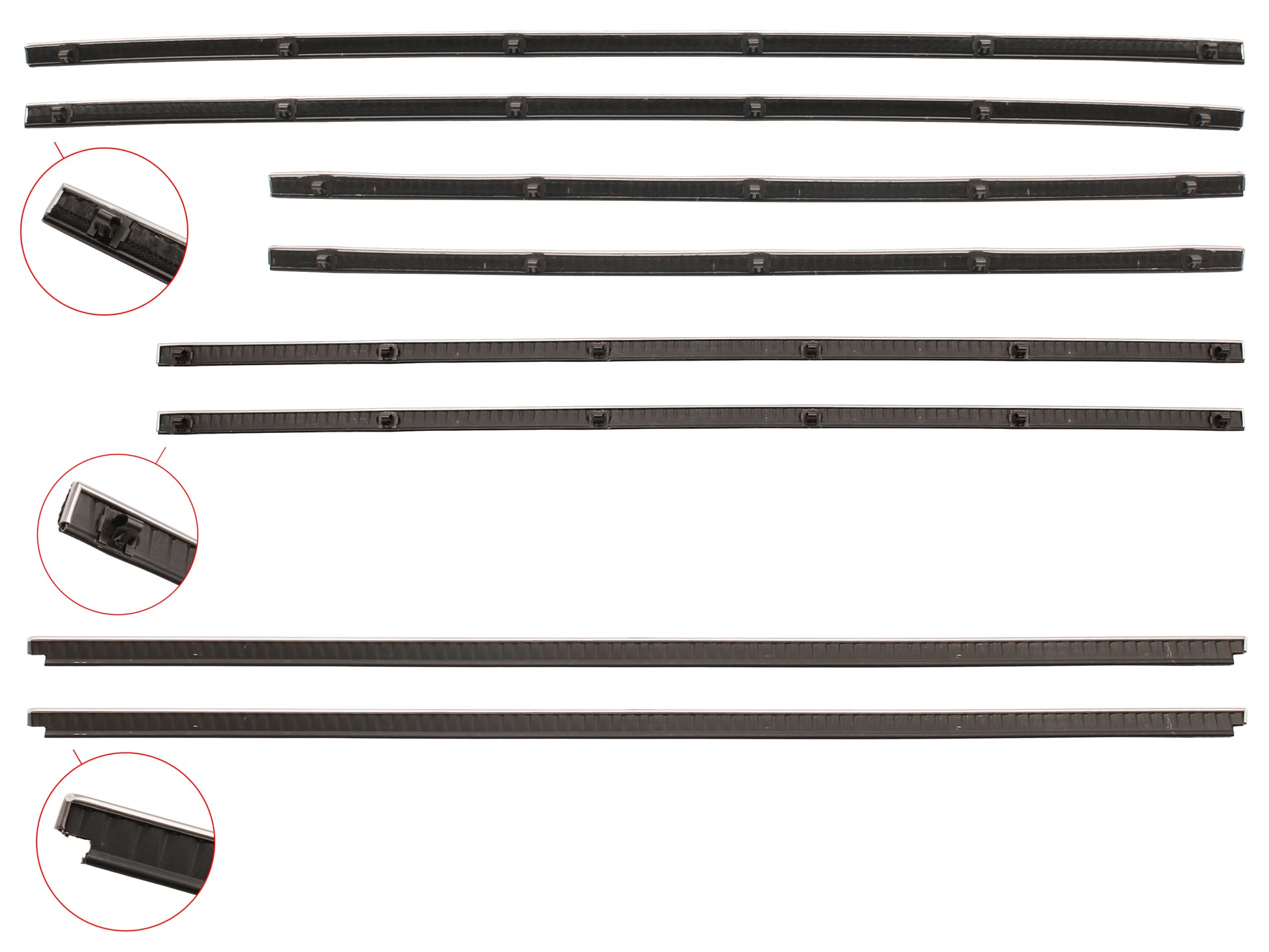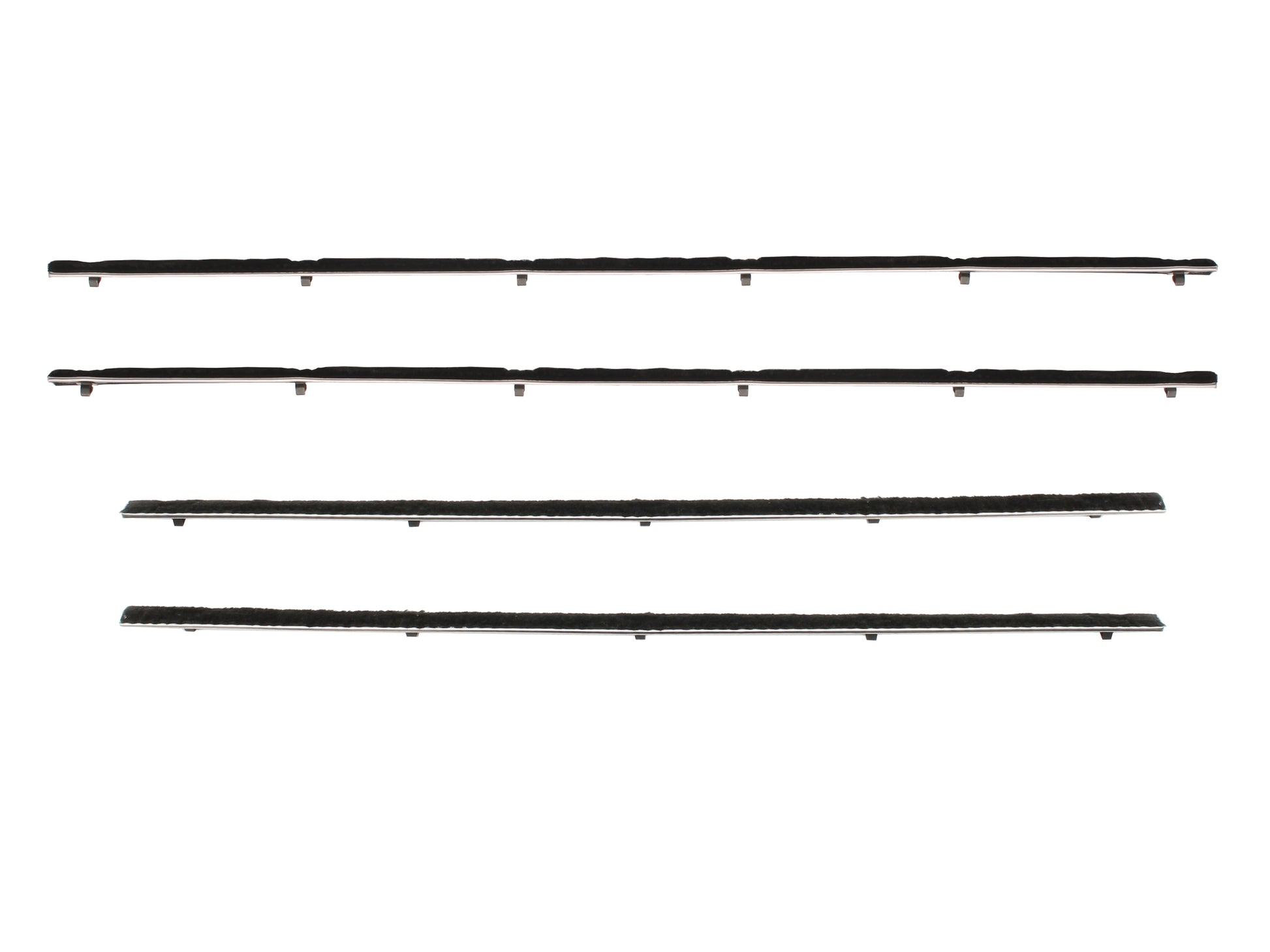 Includes inner/outer door belts for both doors, and inner/outer quarter panel belts for both sides
