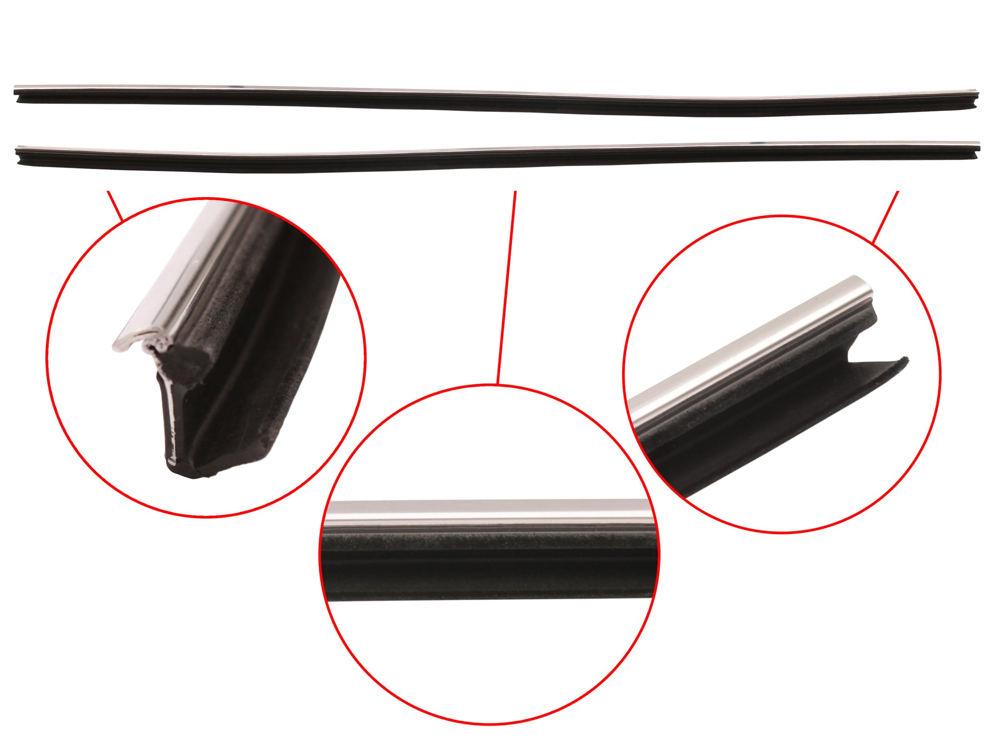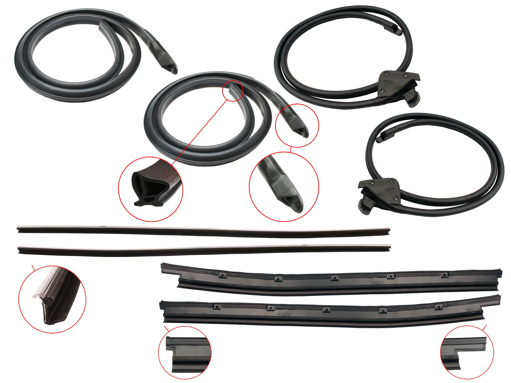 Includes lower door seals, inner/outer door belts and roof rail seals for both doors