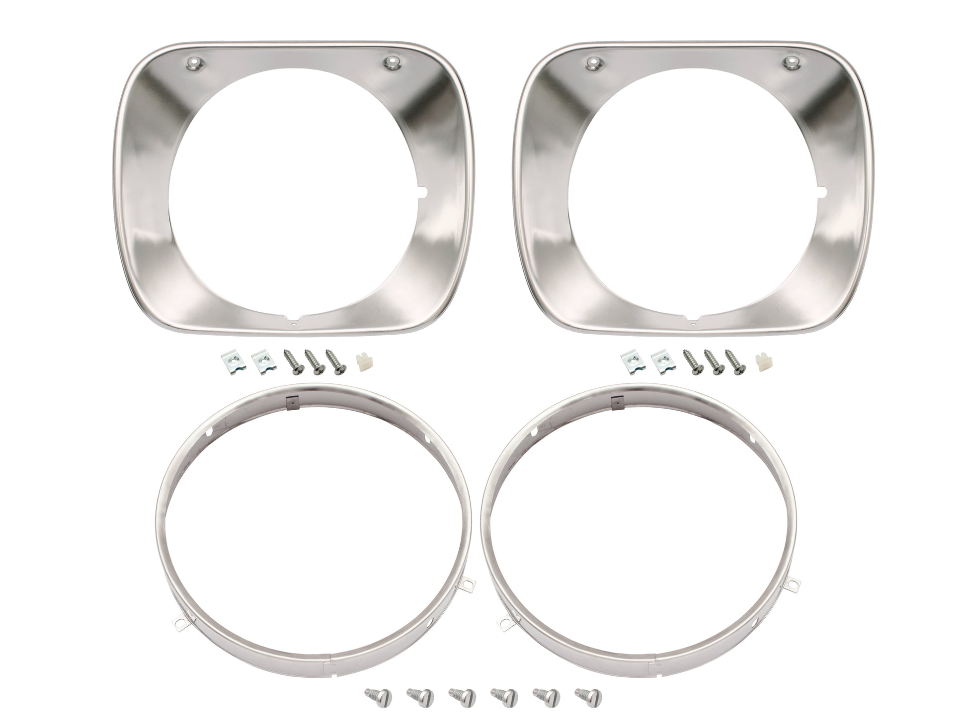 Headlight retaining rims and screws for both sides