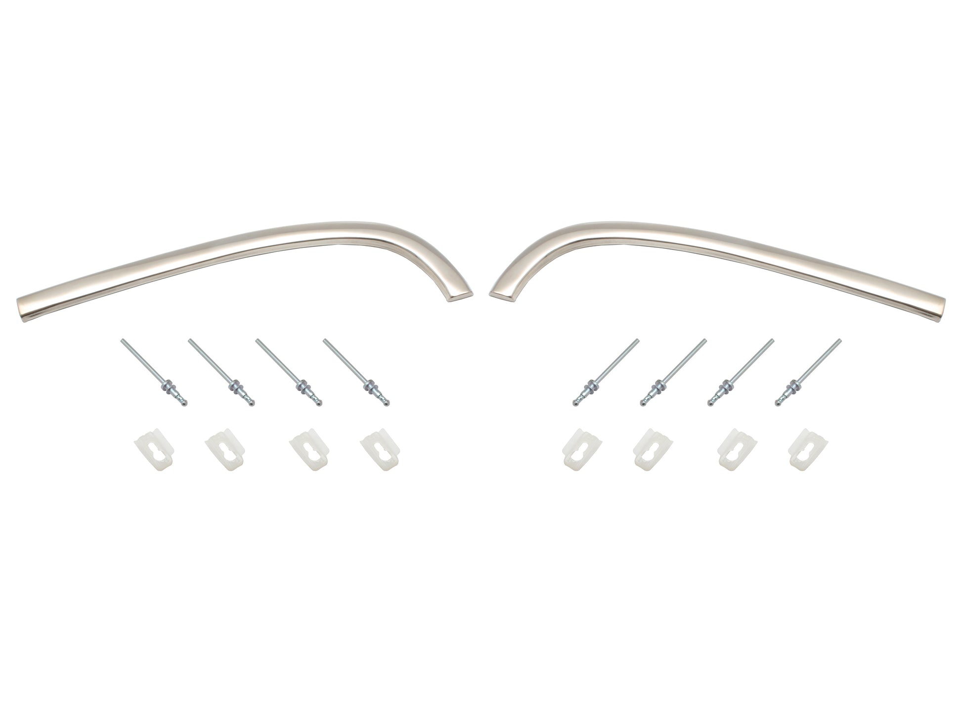 This kit has 1 Left and 1 Right guard moulding, 8 rivets and 8 clips.
